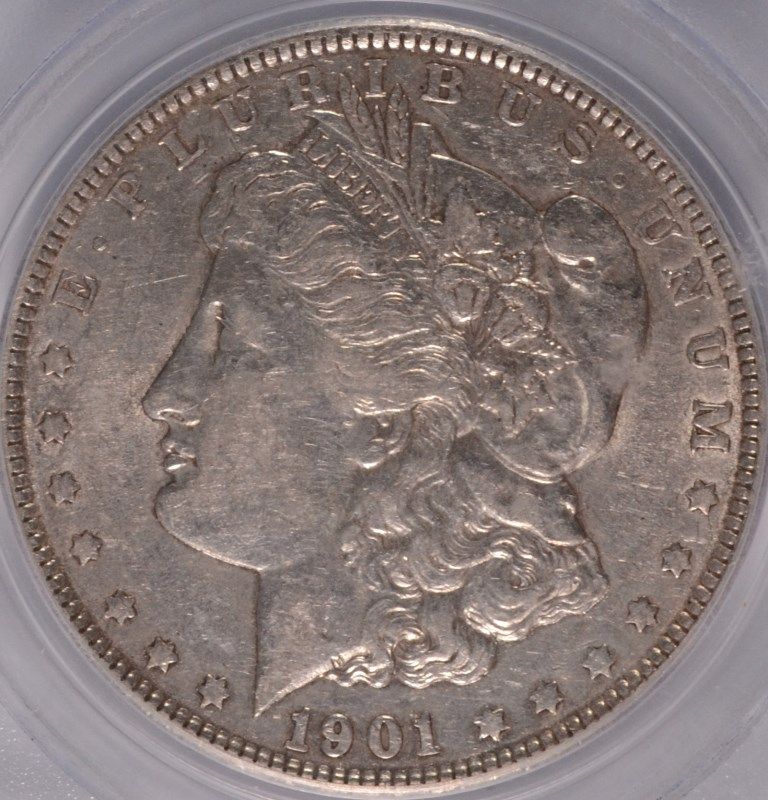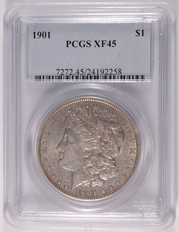 1901 MORGAN SILVER DOLLAR, PCGS XF/AU-45 NICE!!