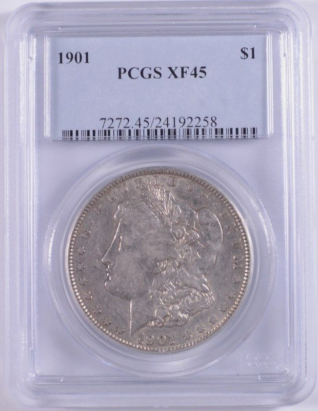 1901 MORGAN SILVER DOLLAR, PCGS XF/AU-45 NICE!!