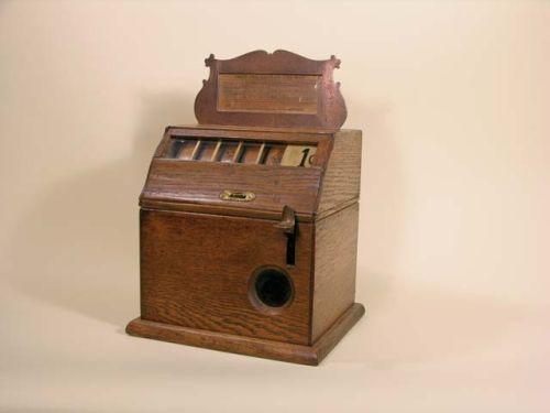 1901 Mills "Little Perfection" Poker Reel Trade Stimulator, Oak Case by Mills Novelty Co.