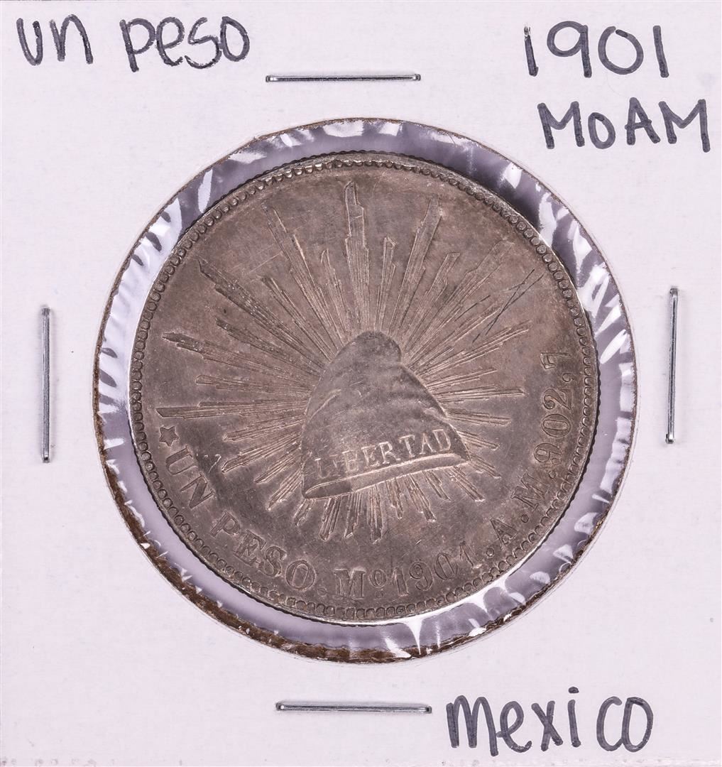 One 1901 Mo AM Mexico Un Peso Silver Coin.
