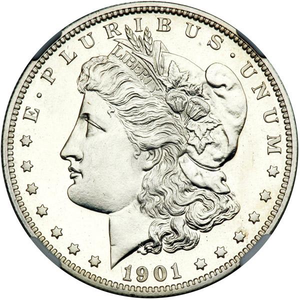 1901. NGC graded Proof 65 Cameo. A blast white Gem Cameo Proof! Only 813 struck. This date is significant because business strikes are scarce in Mint condition, which puts more stress on the Proofs. As it is, Proofs were struck in small numbers. This beautiful Gem displays a silvery brilliance untopped by any others in its Proof 65 class, brilliance over remarkably clean surfaces that impresses us with its fresh originality. Struck with systematic exactness throughout, there is no need to ignore the central part of the eagle’s breast where a somewhat rounded impression is sometimes left by even Proof dies. This 1901 is decidedly bold in the centers. Pop 6; 9 finer (PCGS # 7336) .
