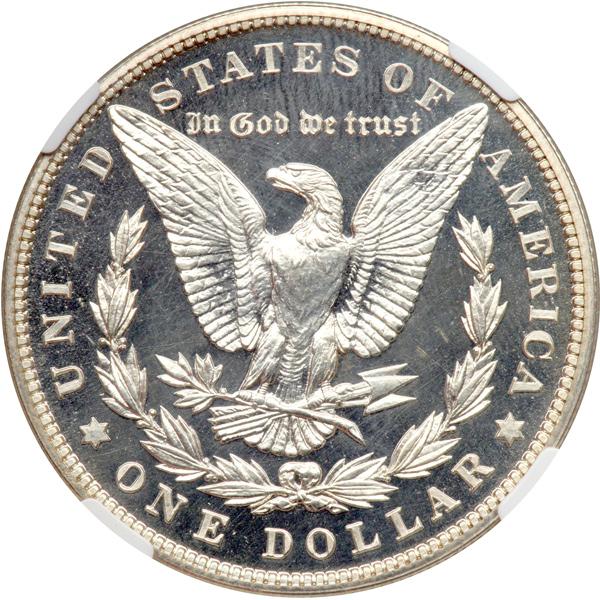 1901 Morgan Dollar. NGC graded Proof 65. Fully white gem. And a fresh and original two-tone Gem example it is of this popular date. Though the word "cameo" doesn't appear on the NGC holder, the coin definitely has contrast. This piece has been well preserved since the day of its manufacture, that is plain to see; it's up to future collectors to continue to preserve it for future generations. Apart from the high quality of this coin, we must address the significance of it in relation to other known examples. Out of a mintage of 813 pieces, a couple of hundred have been examined by NGC. Within those examples, limited numbers have earned the Proof 65 or higher designation. Regardless of your preference for the different grading services, the general consensus is that this scarce date is easily one of the favorites among Silver Dollar collectors. Pop 36; 38 finer (PCGS # 7336) .