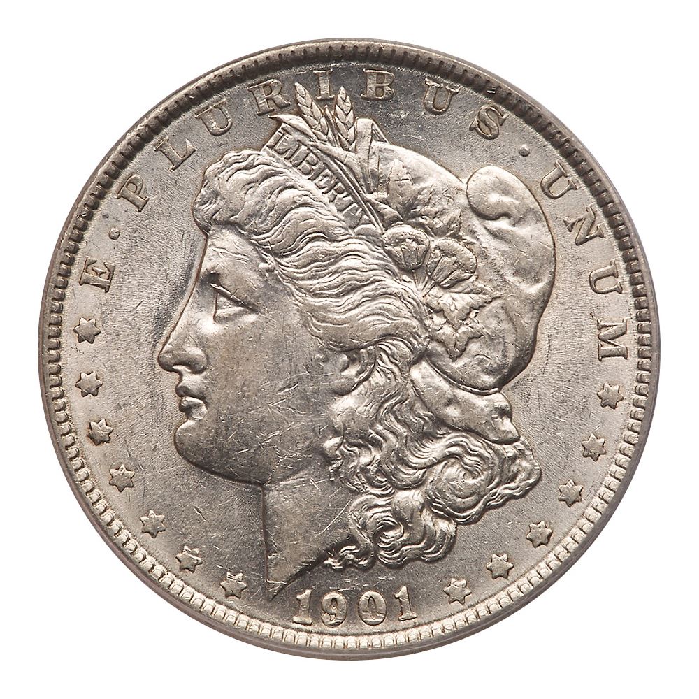 1901. PCGS graded AU-53. CAC. PQ. Scarce date in higher grades. Housed in an Old Green Holder PCGS # 7272 Estimated Value 200 - 250