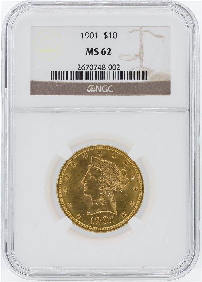 One 1901 NGC MS62 $10 Liberty Head Eagle Gold Coin. NGC Certified.