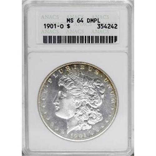 <B>1901-O $1 MS64 Deep Mirror Prooflike ANACS.</B></I> NGC Census: (44/23). PCGS Population (17/11). Numismedia Wsl. Price for NGC/PCGS coin in MS64: $825. (#97275)<BR><BR><b>Shipping:</b> Coins & Currency (<a target="_blank" href="http://www.heritageauctions.com/common/shipping.php">view shipping information</a>)