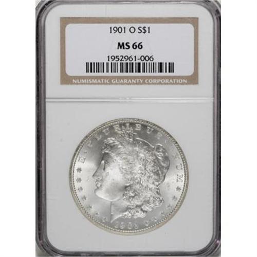 <B>1901-O $1 MS66 NGC.</B></I> An impressive Premium Gem with fully brilliant and frosty mint luster. Just a touch of design weakness is evident over Liberty's ear as nearly always. Only 11 finer examples are NGC certified.<BR><BR><B>Coin Engraver:</B> George T. Morgan<BR><BR><b>Shipping:</b> Coins & Currency (<a target="_blank" href="http://www.heritageauctions.com/common/shipping.php">view shipping information</a>)