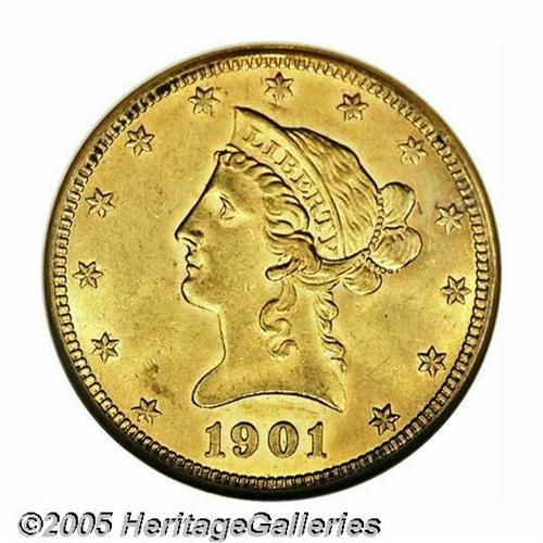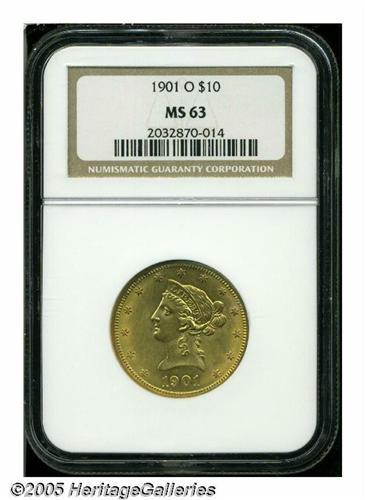 <B>1901-O<$10> MS63 NGC.</B></I> Sharply struck with brilliant honey-gold luster and satiny surfaces. Most examples of this issue are circulated, and Choice Mint State coins are practically non-existent. Population: 17 in 63, 4 finer (5/05).