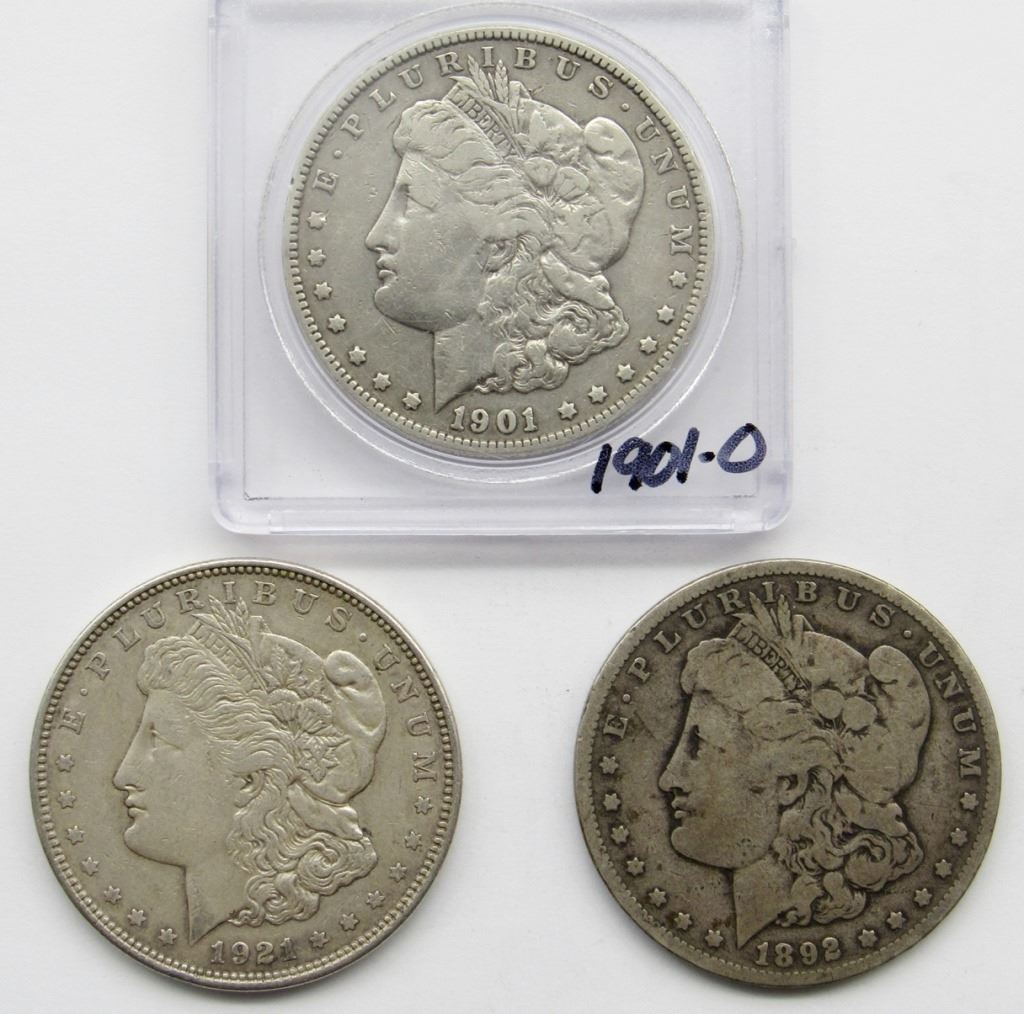 1901-O, 1892-O, 1921-D CIRC MORGAN $