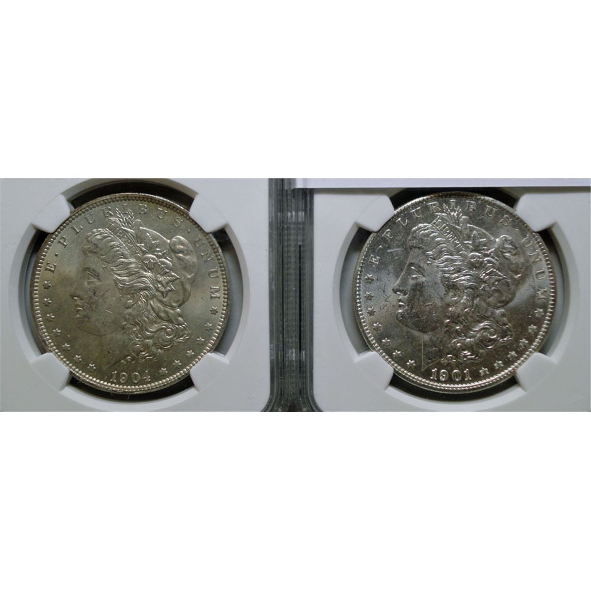 1901 O & 1904 O morgan dollars NGC 63