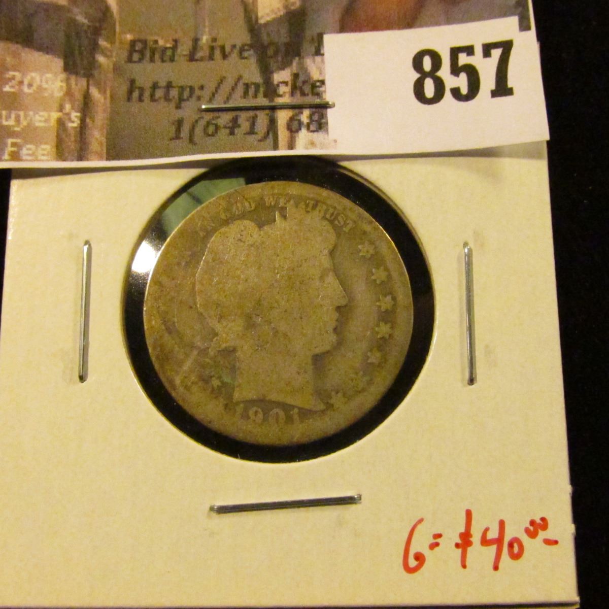 1901-O Barber Quarter, AG, better date, G value $40