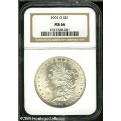 <B>1901-O<img border='0' src='http://www.heritagecoins.com/images/star.gif' width=10 height=10>$1 MS66 NGC.</B></I> Brilliant and lustrous surfaces are well preserved. Lot:10584