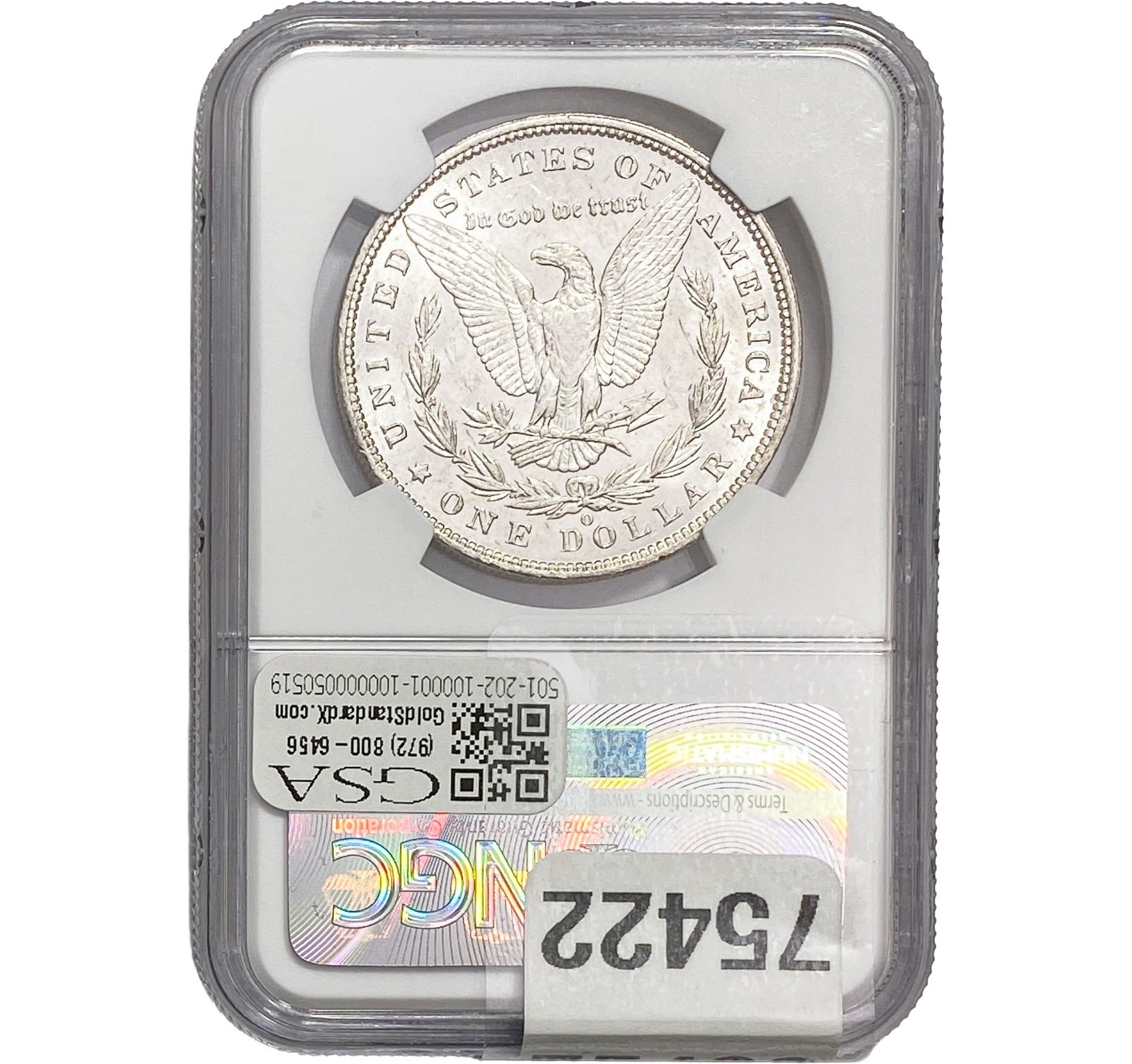 e. Coins sold referencing a third-party grading service are sold “AS IS” without any express or implied warranty, except for a guarantee by GSA that they are genuine. Removal or alteration of the holder, voids all of Bidder’s claims concerning that Product. Certain warranties may be available from the grading services and Bidders are referred to them for further details: Numismatic Guaranty Corporation (NGC), PO Box 4776, Sarasota, FL 34230, www.ngccoin.com/services/writtenguarantee.asp; Professional Coin Grading Services (PCGS), PO Box 9458, Newport Beach, CA 92658, www.pcgs.com/guarantee.html; ANACS, 6555 S. Kenton St., Ste. 303, Englewood, CO 80111; and Independent Coin Grading Co. (ICG), 7901 East Bellview, Ave., Suite 50, Englewood, CO 80111.