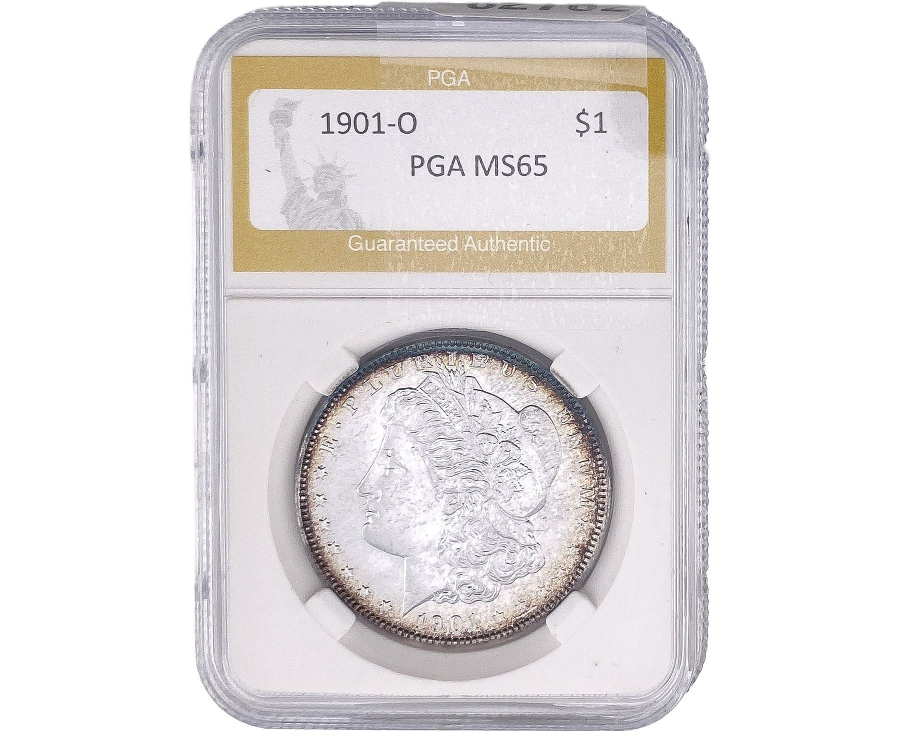 COINS AND CURRENCY LISTED IN GSA’S CATALOG AS GRADED AND ENCAPSULATED BY PCGS, NGC, ANACS, ICG, PCGS CURRENCY, PMG, PCGS BANKNOTE GRADING, CMC OR ANY OTHER THIRD-PARTY GRADING SERVICE ARE LIKEWISE SOLD “AS-IS” EXCEPT AS EXPRESSLY SET FORTH HEREIN. ALL THIRD-PARTY GRADING SERVICE GUARANTEES, INCLUDING AUTHENTICITY, ARE THE SOLE RESPONSIBILITY OF THE THIRD-PARTY GRADING SERVICE AND NOT WARRANTIES OR GUARANTEES OF GSA. BIDDERS SHOULD CONTACT THESE THIRD-PARTY GRADING SERVICES DIRECTLY WITH RESPECT TO ANY CLAIMS OR QUESTIONS THEY MAY HAVE CONCERNING THEIR GUARANTEES AND WARRANTIES. BIDDERS ACKNOWLEDGE AND AGREE THAT AUCTIONEER IS NOT BOUND BY OR LIABLE FOR ANY OPINION OR CERTIFICATION BY ANY THIRD-PARTY GRADING SERVICE. REMOVAL OF A PRODUCT FROM ITS PROTECTIVE CASING OR HOLDER OR ALTERATION OF ANY COIN HOLDER WAIVES ALL RIGHTS CONCERNING THE PRODUCT CONTAINED THEREIN.