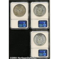 <B>1901-O<S$1> MS65 NGC.</B></I> Three bright Gems, all of which are boldly struck and fully lustrous, with lightly abraded surfaces. One piece displays mottled apricot patina over most of the reverse, and all three coins show faint grease stains (as struck) on the obverse. 3 Coins <BR><BR><B>Important notice:</B> Heritage usually auctions material at the rate of 200-250 lots per hour. On some occasions eBay Live bid software or the Internet may not be able to keep up with the pace of the auction. We recommend placing a realistic absentee bid now as insurance to avoid disappointment. Occasionally the auctioneer may eliminate or reject an eBay Live bid, and the auctioneer may also reopen a lot after the close of the eBay live bidding (usually because we missed an audience bid), and may reject your bid even if it shows you as the winning bidder. By bidding via eBay Live, you agree that Heritage may award the lot to another bidder at its sole discretion under the circumstances described above or any other reasonable circumstances. Since eBay bids are not shown to us until we open the lot on the floor, we treat those bids just like floor bids. In most cases the floor responds before the eBay bid is presented to us, due to Internet lag time, so for consistency we have made it a policy that floor bids are always considered first over tie eBay live bids. Also please note that all Heritage lots purchased through eBay Live carry a 20% Buyer's Premium. Please make sure you read the Terms and Conditions before you bid. </span></font></tr></table></td></tr></table>
