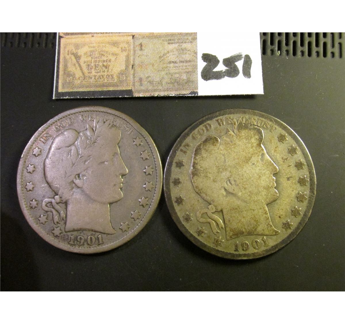 1901 P & 1901 O U.S. Barber Half Dollars. Both Good. Rims slightly weak on the latter.