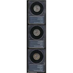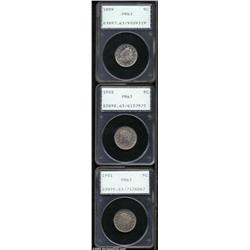 <TABLE cellSpacing=0 cellPadding=0 width="100%" bgColor=#000000 border=0><TBODY><TR><TD width="100%"><TABLE cellSpacing=1 cellPadding=3 width="100%" border=0><TBODY><TR><TD width="100%" bgColor=#79735c><FONT face=arial color=#ffffff size=3><B>Description</B> </FONT></TD></TR><TR><TD width="100%" bgColor=#ffffff><FONT face=arial size=2><B>1899 5C PR63 PCGS, 1900 PR63 PCGS,</B></I> and a <B>1901 PR63 PCGS,</B></I> all delicately toned specimens in first generation holders. (3 coins) </FONT></TD></TR></TBODY></TABLE></TD></TR></TBODY></TABLE><BR><A name=PricesRealized></A><TABLE cellSpacing=0 cellPadding=0 width="100%" bgColor=#000000 border=0><TBODY><TR><TD width="100%"><TABLE cellSpacing=1 cellPadding=3 width="100%" border=0><TBODY><TR><TD width="100%" bgColor=#79735c><A name=PR><FONT face=arial color=#ffffff size=3><B>Previous Prices from Heritage Auctions</B> </FONT></A></TD></TR><TR><TD bgColor=#f6f6ed><TABLE cellSpacing=0 cellPadding=0 width="100%" border=1><TBODY><TR><TD align=middle width="33%"><B>Date</B></TD><TD align=middle width="33%"><B>Service</B></TD><TD align=middle width="33%"><B>Price</B></TD></TR><TR bgColor=whitesmoke><TD width="33%"><B>12/12/2000</B></TD><TD width="33%">PCGS</TD><TD width="33%">$145.00</TD></TR><TR bgColor=whitesmoke><TD width="33%"><B>08/01/1999</B></TD><TD width="33%">PCGS</TD><TD width="33%">$633.00</TD></TR><TR bgColor=whitesmoke><TD width="33%"><B>04/28/2002</B></TD><TD width="33%">ANACS</TD><TD width="33%">$126.50</TD></TR></TBODY></TABLE></TD></TR><TR><TD bgColor=#ffffff><FONT face=arial size=1 ?>PLEASE NOTE: All prices realized reflect the final hammer price PLUS the buyer's premium in auctions that charge a buyer's premium. Each item has a notation at the top of the listing indicating whether that lot included a buyer's premium. Example: A item that sells with a final hammer price of $100 and a 20% buyer's premium will display with a price realized of $120. All information listed is intended to be as accurate as possible, but errors are possible. Please use this guide carefully and inform us of any inaccuracies. </FONT></TD></TR></TBODY></TABLE></TD></TR></TBODY></TABLE><BR><TABLE cellSpacing=0 cellPadding=0 width="100%" bgColor=#000000 border=0><TBODY><TR><TD width="100%"><TABLE cellSpacing=1 cellPadding=3 width="100%" border=0><TBODY><TR><TD width="100%" bgColor=#79735c colSpan=6><FONT face=arial color=#ffffff size=3><B>Price Guide*</B> </FONT></TD></TR><TR bgColor=#f6f6ed><TD align=middle><B>Grade</B> </TD><TD align=middle><B>Coin World<BR>(Trends)</B> </TD><TD align=middle><B>Numismedia<BR>Retail</B> </TD><TD align=middle><B>Numismedia<BR>Wholesale</B> </TD><TD align=middle><B>Coin<BR>Universe</B> </TD><TD align=middle><B>Heritage<BR>Value Index</B> </TD></TR><TR><TD colSpan=6>No Pricing Data Available</TD></TR><TR bgColor=#ffffff><TD colSpan=6><FONT size=1>*All information listed is intended to be as accurate as possible, but errors are possible. No item may be returned or refused based on this information which is provided as a service to our customers. You should contact each pricing source directly to determine the accuracy of this information. </FONT></TD></TR></TBODY></TABLE></TD></TR></TBODY></TABLE><BR><TABLE cellSpacing=0 cellPadding=0 width="100%" bgColor=#000000 border=0><TBODY><TR><TD width="100%"><TABLE cellSpacing=1 cellPadding=3 width="100%" border=0><TBODY><TR><TD width="100%" bgColor=#79735c><FONT face=arial color=#ffffff size=3><B>Population Guide</B> </FONT></TD></TR><TR bgColor=#ffffff><TD align=middle><!-- Begin Output of Population Grid--><TABLE cellSpacing=0 cellPadding=0 width="100%" border=0><TBODY><TR><TD vAlign=center><TABLE cellSpacing=0 width="100%" border=1 cellsadding="3"><TBODY><TR><TD vAlign=center><TABLE cellSpacing=0 cellPadding=3 width="100%" border=1><TBODY><TR><TD vAlign=center align=middle bgColor=#f0f1e8 colSpan=2 <CENTER><FONT face=Arial size=2><B>PCGS Pop </B></FONT><CENTER></CENTER></TD><TD vAlign=center align=middle bgColor=#f0f1e8 colSpan=2><CENTER><FONT face=Arial size=2><B>NGC Pop</B></CENTER></FONT></TD></TR><TR><TD vAlign=center><FONT face=Arial size=2>(63)</FONT> </TD><TD vAlign=center align=right><FONT face=Arial size=2>56</FONT> </TD><TD vAlign=center><FONT face=Arial size=2>(63)</FONT> </TD><TD vAlign=center align=right><FONT face=Arial size=2>20</FONT> </TD></TR><TR><TD vAlign=center><FONT face=Arial size=2>(>63)</FONT> </TD><TD vAlign=center align=right><FONT face=Arial size=2>319</FONT> </TD><TD vAlign=center><FONT face=Arial size=2>(>63)</FONT> </TD><TD vAlign=center align=right><FONT face=Arial size=2>297</FONT> </TD></TR></TBODY></TABLE></TD></TR></TBODY></TABLE></TD></TR></TBODY></TABLE><!-- End Output of Population Grid--> 3 coins Important notice: Heritage usually auctions material at the rate of 200-250 lots per hour. On some occasions eBay Live bid software or the Internet may not be able to keep up with the pace of the auction. We recommend placing a realistic absentee bid now as insurance to avoid disappointment. Occasionally the auctioneer may eliminate or reject an eBay Live bid, and the auctioneer may also reopen a lot after the close of the eBay live bidding (usually because we missed an audience bid), and may reject your bid even if it shows you as the winning bidder. By bidding via eBay Live, you agree that Heritage may award the lot to another bidder at its sole discretion under the circumstances described above or any other reasonable circumstances. Also please note that all Heritage lots purchased through eBay Live carry a 20% Buyer's Premium. Please make sure you read the Terms and Conditions before you bid.</TD></TR></TBODY></TABLE></TD></TR></TBODY></TABLE>