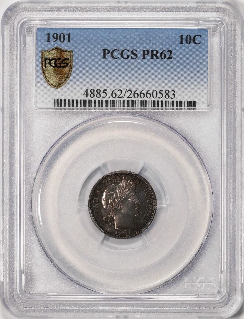 One 1901 Proof Barber Dime Coin PCGS PR62. PCGS Graded.