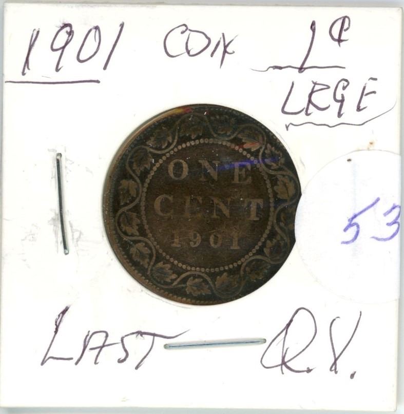 1901 Q.V. large 1¢ coin