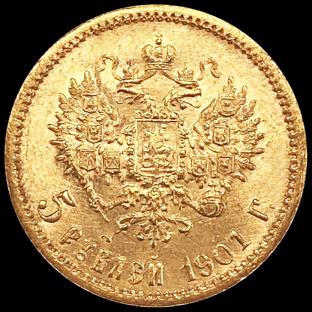 1901 Russia Gold 5 Rouble UNCIRCULATED