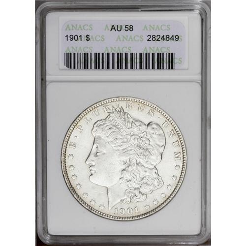 1901 S$1 AU58 ANACS. The lightest rub separates this m 1901[img border='0' src='http://www.heritagec