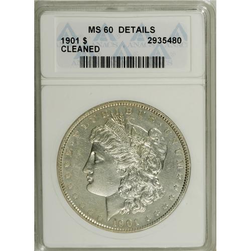 1901 S$1 --Cleaned--ANACS. MS60 Details. An untoned and