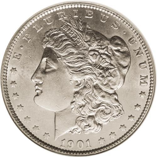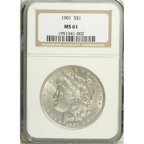 <B>1901 S$1 MS61 NGC.</B></I> This pleasing Mint State specimen has bright silver luster and no toning on either side, save for the faintest wisps of champagne color. The strike is sharp as evidenced by nearly complete hair detail over Liberty's ear and strong breast feathers on the eagle. A faint grade-limiting hairline is visible on the cheek.<BR><I>From The Park Cities Collection.</B></I><BR><BR><b>Shipping:</b> Coin/Currency (<a target="_blank" href="http://www.heritageauctions.com/common/shipping.php">view shipping information</a>)