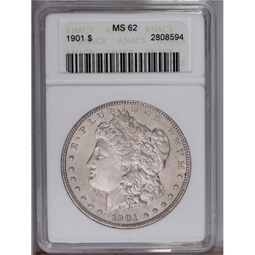 1901 S$1 MS62 ANACS. Satiny silver surfaces with hazy 1901[img border='0' src='http://www.heritageco