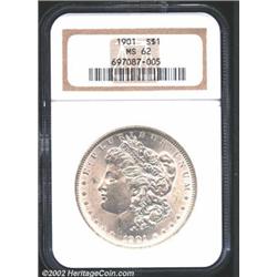 1901 S$1 MS62 NGC. The first of two Mint State 1901 Morgan Dollars in this sale, this is a suitably.