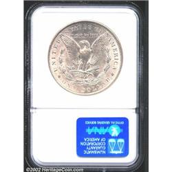 1901 S$1 MS62 NGC. The first of two Mint State 1901 Morgan Dollars in this sale, this is a suitably lustrous coin for the grade. The otherwise untoned, silver-white features reveal the lightest blushes of golden iridescence as the coin turns under the light. While the '01-P is not known for vibrant surface texture, this coin shimmers with modest, yet appreciable cartwheel effects. Well struck save for the lightest softness of detail over the central highpoints, both sides are remarkably free of outwardly distracting abrasions for the BU level of preservation. Important notice: We expect to be auctioning lots at the rate of 200-250 per hour. Sometimes eBay Premier live bid software cannot keep up with that pace, so we strongly recommend that you place a realistic proxy bid now as insurance to avoid disappointment. Also please note that all Heritage/CAA lots purchased through eBay Premier carry a 20% Buyer's Premium. Please make sure you read the Terms and Conditions.