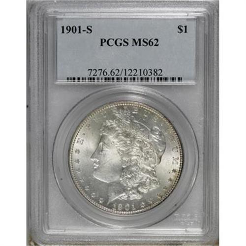 <B>1901-S $1 MS62 PCGS.</B></I> PCGS Population (368/1835). NGC Census: (208/966). Mintage: 2,284,000. Numismedia Wsl. Price for NGC/PCGS coin in MS62: $425. (#7276)<BR><BR><B>Coin Engraver:</B> George T. Morgan<BR><BR><b>Shipping:</b> Coins & Currency (<a target="_blank" href="http://www.heritageauctions.com/common/shipping.php">view shipping information</a>)