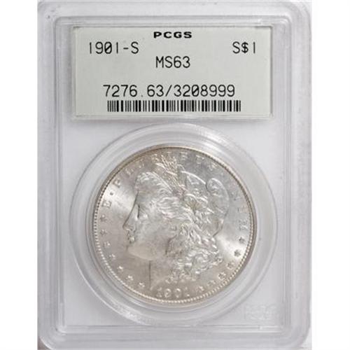 <B>1901-S $1 MS63 PCGS.</B></I> PCGS Population (827/960). NGC Census: (392/566). Mintage: 2,284,000. Numismedia Wsl. Price for NGC/PCGS coin in MS63: $580. (#7276)<BR><BR><B>Coin Engraver:</B> George T. Morgan<BR><BR><b>Shipping:</b> Coins & Currency (<a target="_blank" href="http://www.heritageauctions.com/common/shipping.php">view shipping information</a>)