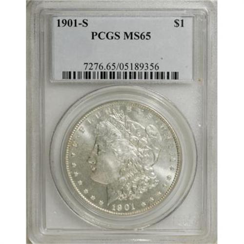 <B>1901-S $1 MS65 PCGS.</B></I> This sensational Gem has fully brilliant silver surfaces on both sides, with satiny and reflective devices that are essentially untoned, save for the slightest hints of gold on each side. The 1901-S is an elusive issue in the higher grades, and it is especially rare above the MS65 grade level. PCGS has only graded 26 finer pieces.<BR><BR><B>Coin Engraver:</B> George T. Morgan<BR><BR><b>Shipping:</b> Coins & Currency (<a target="_blank" href="http://www.heritageauctions.com/common/shipping.php">view shipping information</a>)