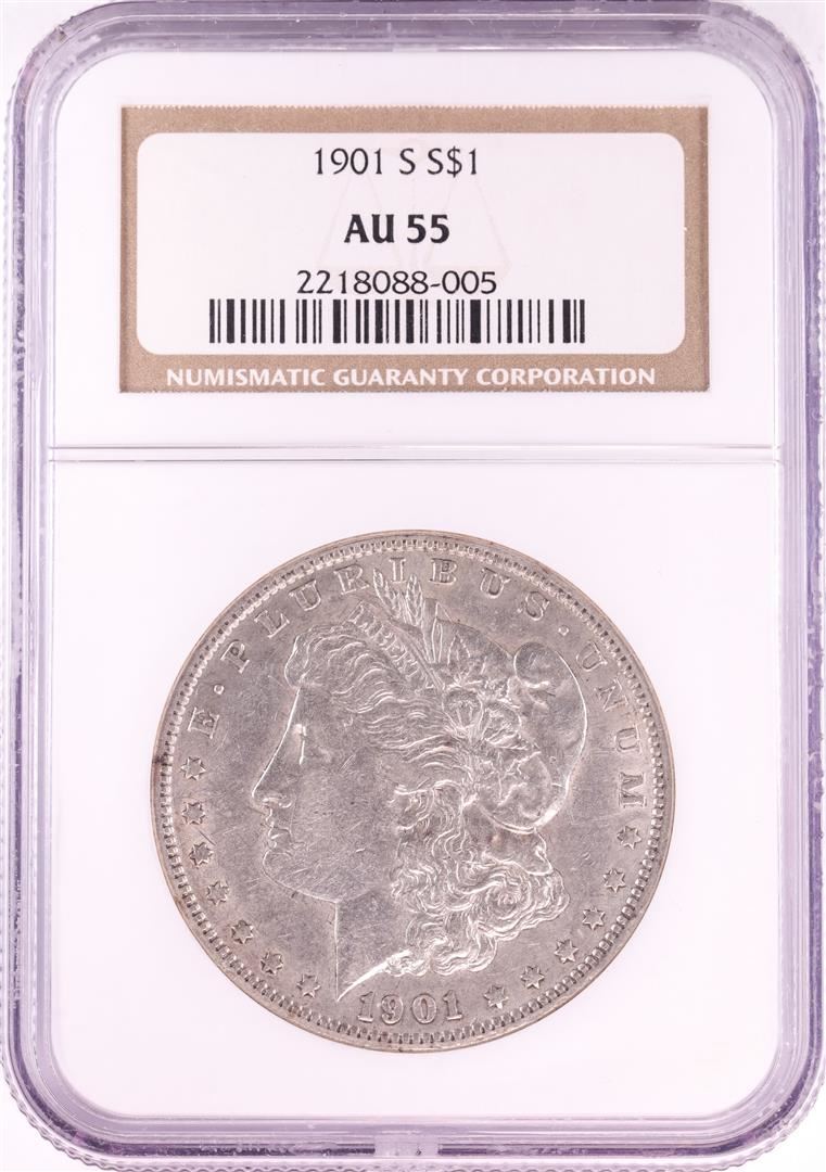 One 1901-S $1 Morgan Silver Dollar Coin NGC AU55. NGC Certified.