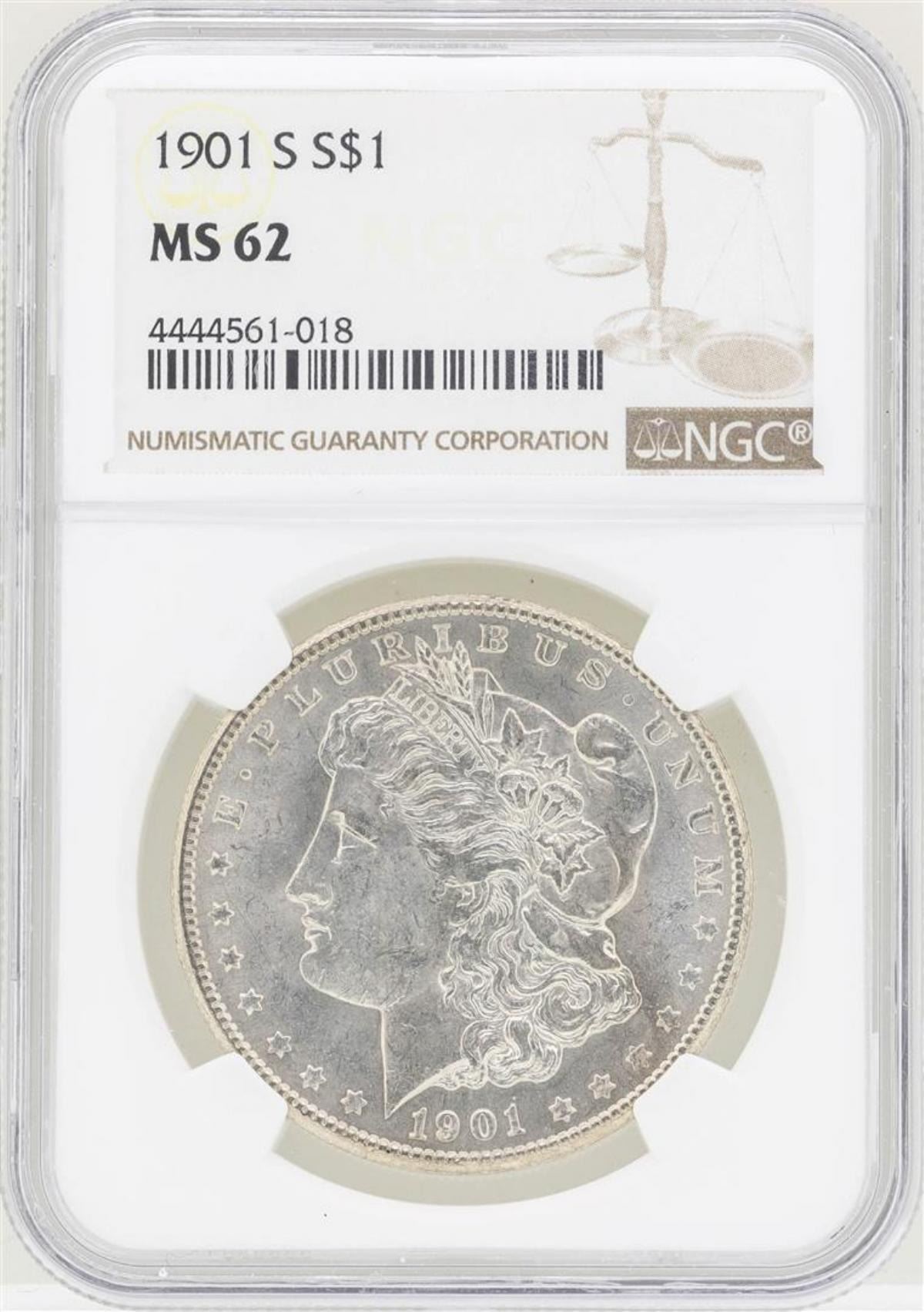 One 1901-S $1 Morgan Silver Dollar Coin NGC MS62. NGC Certified.