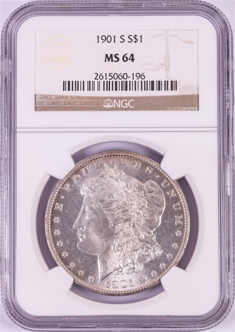 One 1901-S $1 Morgan Silver Dollar Coin NGC MS64. NGC Certified.