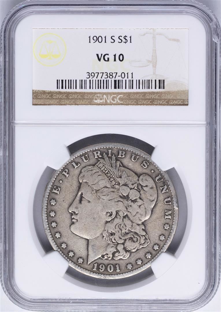 One 1901-S $1 Morgan Silver Dollar Coin NGC VG10. NGC Certified.