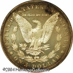 1901 S$1 PR65 NGC. For many years, the 1901 proof <B>1901 S$1 PR65 NGC.</B></I> For many years, the 1901 proof Morgan has been a popular alternative for collectors of Morgan Dollars because of the absolute scarcity and expense of high grade business strikes. As a result, high grade proofs consistently bring a premium when they are offered at public auction. This is an exceptionally nice piece, and an unusual one at that. Unlike most proofs struck from 1901 through 1905 or so, this piece actually shows slight contrast between the fields and devices. Lightly toned throughout. a smattering of cobalt-blue and deep violet color is seen at the peripheries. Several freckles and deep toning spots are seen mostly on the reverse. Population: 31 in 65, 38 finer (11/04). <BR><BR><B>Important notice:</B> Heritage usually auctions material at the rate of 200-250 lots per hour. On some occasions eBay Live bid software or the Internet may not be able to keep up with the pace of the auction. We recommend placing a realistic absentee bid now as insurance to avoid disappointment. Occasionally the auctioneer may eliminate or reject an eBay Live bid, and the auctioneer may also reopen a lot after the close of the eBay live bidding (usually because we missed an audience bid), and may reject your bid even if it shows you as the winning bidder. By bidding via eBay Live, you agree that Heritage may award the lot to another bidder at its sole discretion under the circumstances described above or any other reasonable circumstances. Since eBay bids are not shown to us until we open the lot on the floor, we treat those bids just like floor bids. In most cases the floor responds before the eBay bid is presented to us, due to Internet lag time, so for consistency we have made it a policy that floor bids are always considered first over tie eBay live bids. Also please note that all Heritage lots purchased through eBay Live carry a 20% Buyer's Premium. Please make sure you read the Terms and Conditions before you bid. This lot is being auctioned in conjunction with a live floor auction by Heritage Galleries & Auctioneers. All final auction and invoice information will be supplied by Heritage Galleries & Auctioneers, and all other information should be considered preliminary. Lot:7766