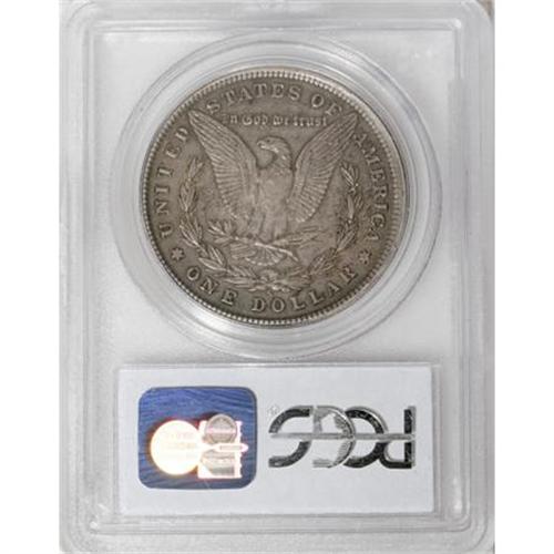 <B>1901-S $1 Morgan Dollar--Tilted Partial Collar--XF45 PCGS.</B></I> Natural charcoal-gray color with lilac tendencies. While the edge itself is not visible, the prominent rim at the lower right obverse and the thin rim opposite confirm the nature of this error.<BR><BR><B>Coin Engraver:</B> George T. Morgan<BR><BR><b>Shipping:</b> Coins & Currency (<a target="_blank" href="http://www.heritageauctions.com/common/shipping.php">view shipping information</a>)