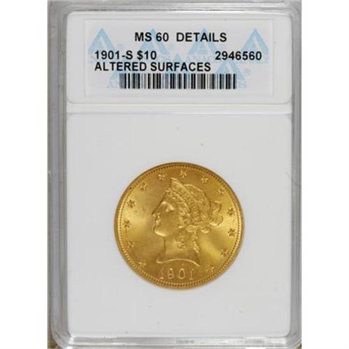 1901-S $10 --Altered Surfaces--ANACS. MS60 Details.