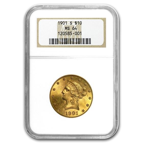 One piece 1901-S $10 Liberty Gold Eagle MS-64 NGC