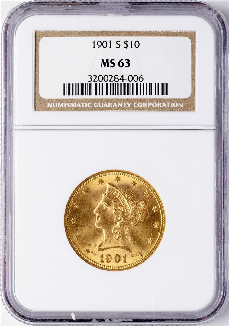 One 1901-S $10 Liberty Head Eagle Gold Coin NGC MS63. NGC Certified.
