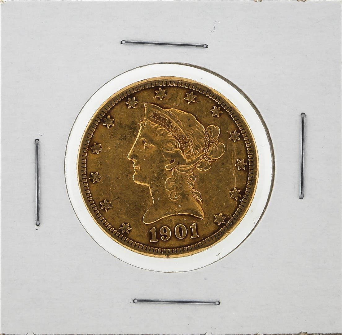 One 1901-S $10 Liberty Head Eagle Gold Coin.