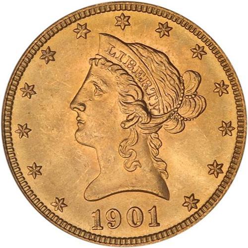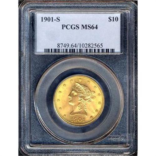 <b>1901-S $10 Liberty. PCGS graded MS64.</b> Brilliant and refreshingly clean for this issue, with flickering luster in the fields and warm golden devices. The fields are vibrant as on just about all 1901-S eagles, untoned, and satin with much eye-appeal <b>(PCGS # 8749)</b> <i>