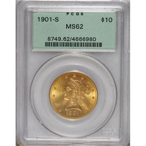 1901-S $10 MS62 PCGS. PCGS Population (3736/7246).