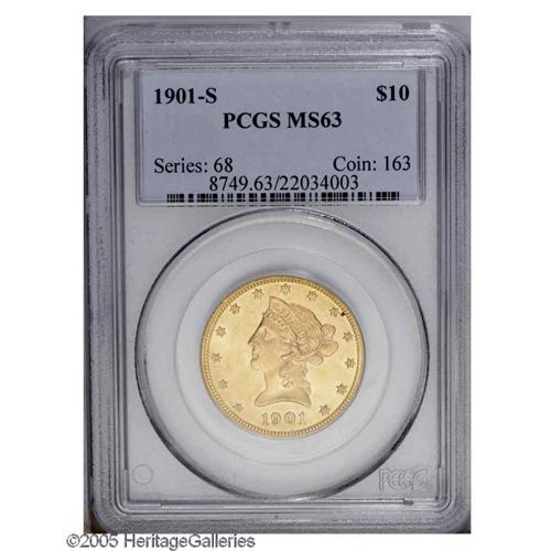 1901-S $10 MS63 PCGS. A lovely S-mint example, this Ea 1901-S[$10] MS63 PCGS.