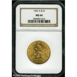 <B>1901-S $10 MS64 NGC.</B></I> Lustrous surfaces are bathed in peach-gold patina. Nicely struck, with a few light marks precluding a higher grade.<BR><I>From The Richard J. Chouinard Collection of United States Coins, Part Two.</B></I> Lot:8825
