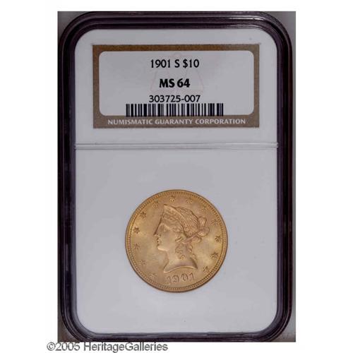 1901-S $10 MS64 NGC. Very nice, sparkling example with 1901-S[$10] MS64 NGC.