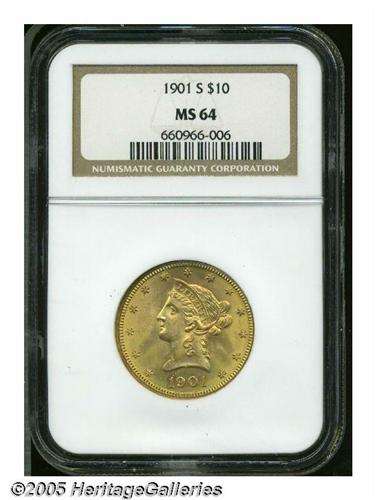 1901-S $10 MS64 NGC. Very nice, sparkling example