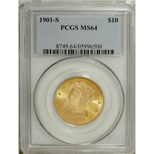 <B>1901-S $10 MS64 PCGS.</B></I> An especially lustrous example with a rich burnished russet toning highlighting particularly clean fields.<BR><BR><b>Shipping:</b> Coin/Currency (<a target="_blank" href="http://www.heritageauctions.com/common/shipping.php">view shipping information</a>)