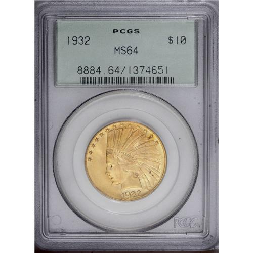 <B>1901-S<$10> MS64 PCGS.</B></I> Both sides are enlivened with rich apricot-gold toning imbued with traces of light green. Highly lustrous surfaces exhibit sharply struck design elements, though the hair over Liberty's ear is a tad soft. Some grade-defining marks are noted on Liberty's cheek and neck, and in the upper left (facing) obverse field.